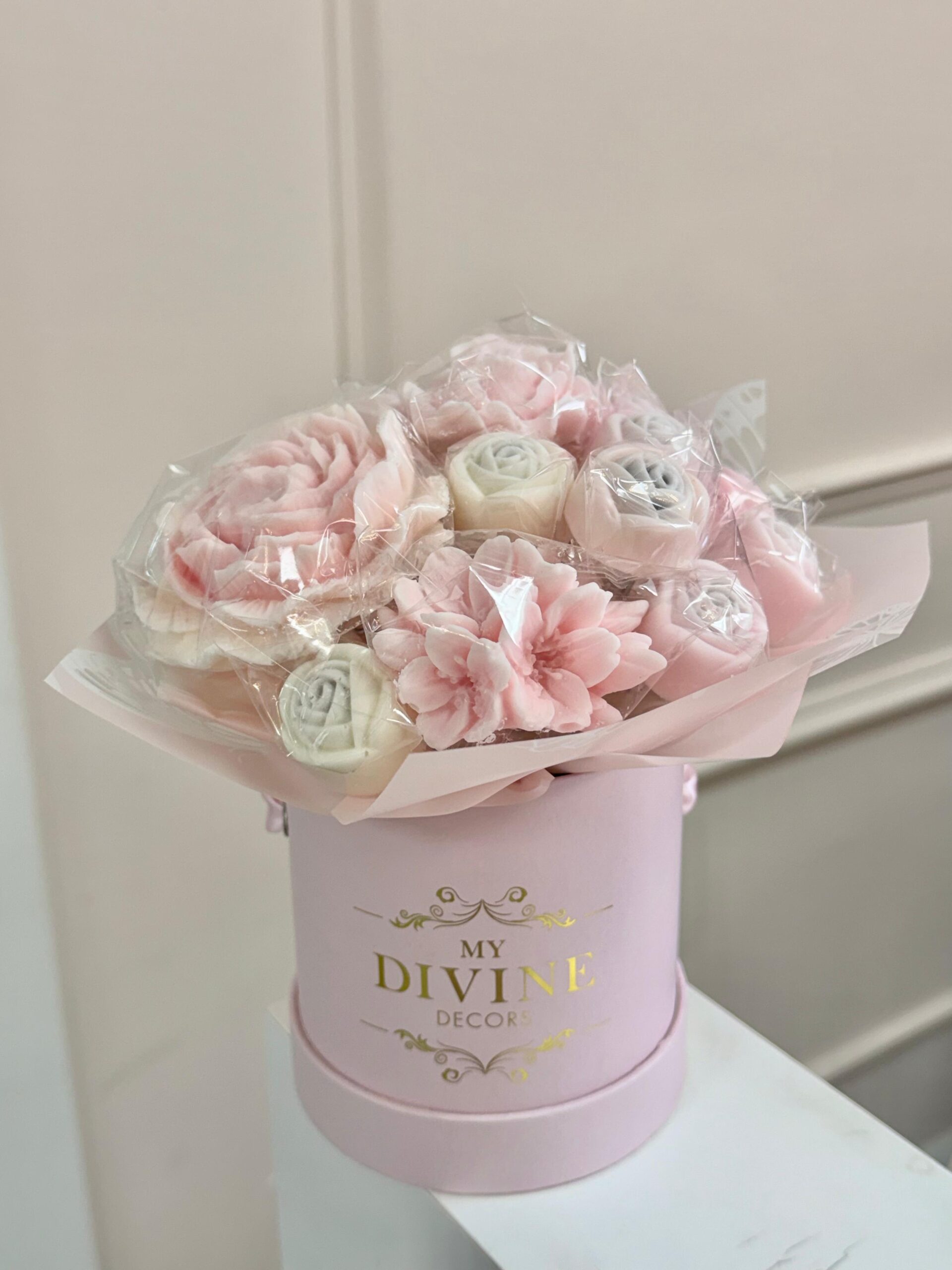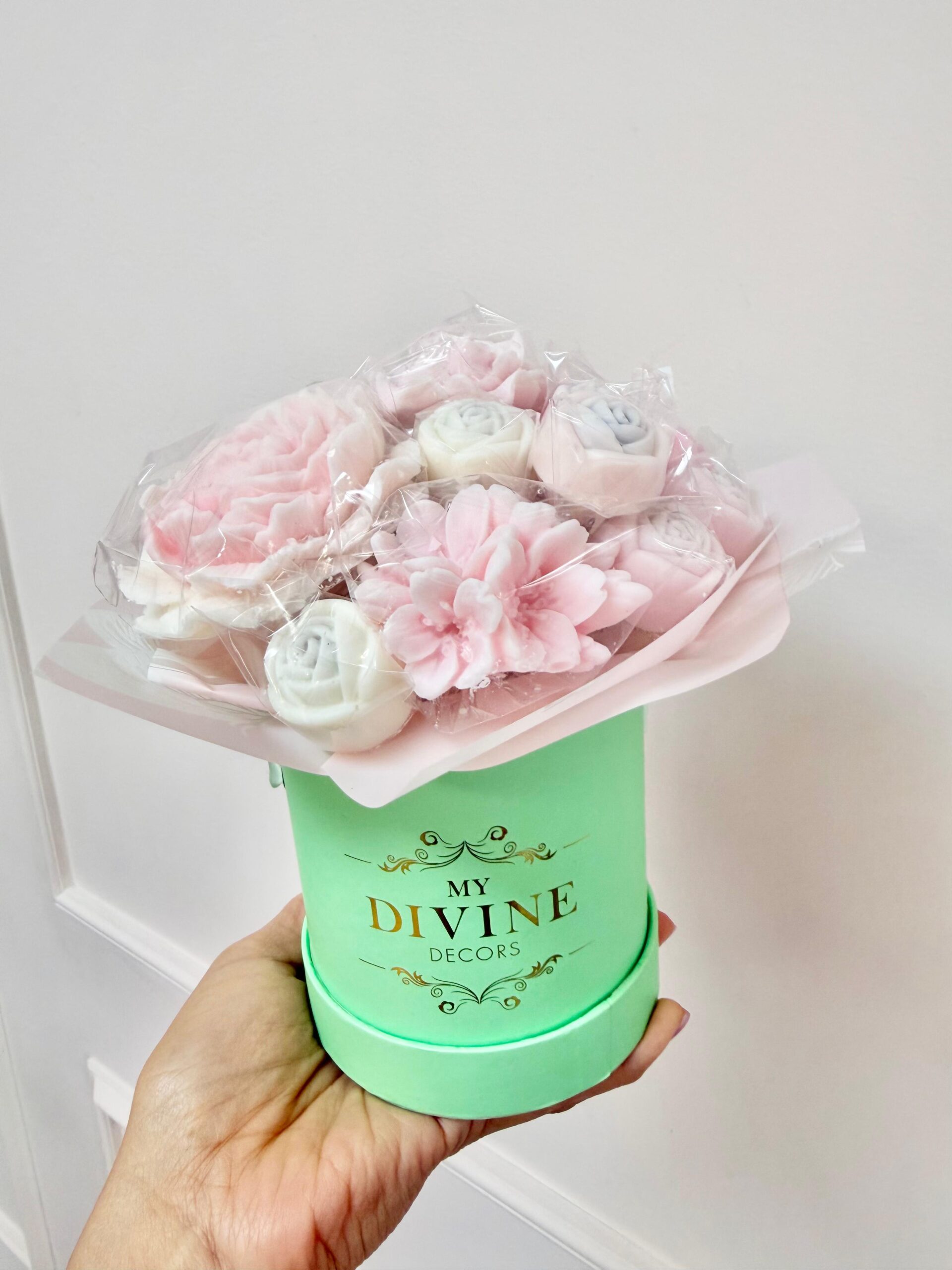 Donde las flores se convierten en dulce. La Caja Chocolate Bloom Divine es una elegante caja de flores de chocolate artesanales como ninguna otra — 15 exquisitos bombones hechos a mano en forma de flores, disponibles en tu elección de suaves tonos rosa o tonos azul bebé, diseñados para ser tan hermosos de ver como de saborear. Una verdadera obra de arte comestible, y un regalo que puede personalizarse completamente al gusto de quien lo recibe.
