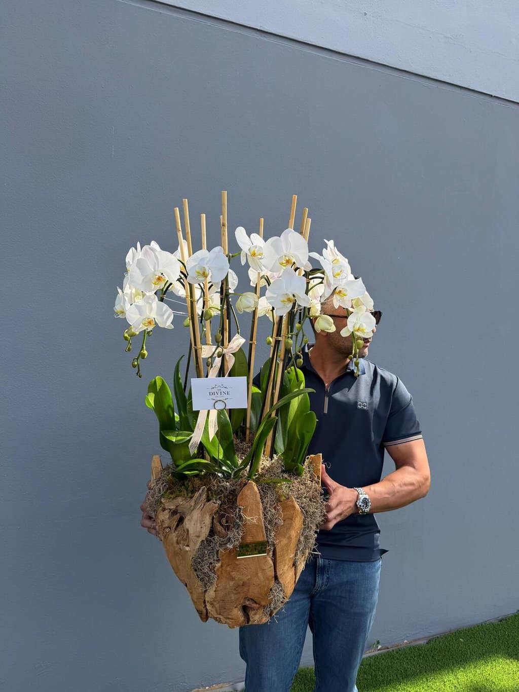 Elegante arreglo de orquídeas Swan en florero de madera XL