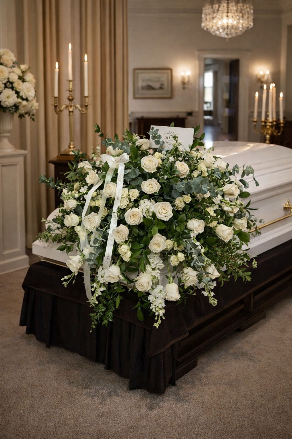 Perfect for traditional funeral services or memorial ceremonies, this elegant cascade arrangement creates a heartfelt and dignified tribute filled with beauty and grace.