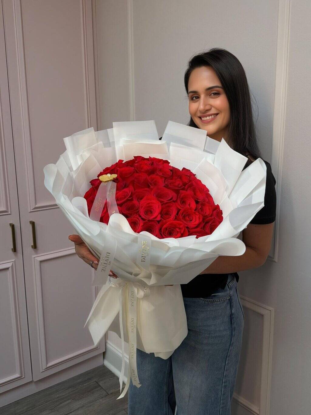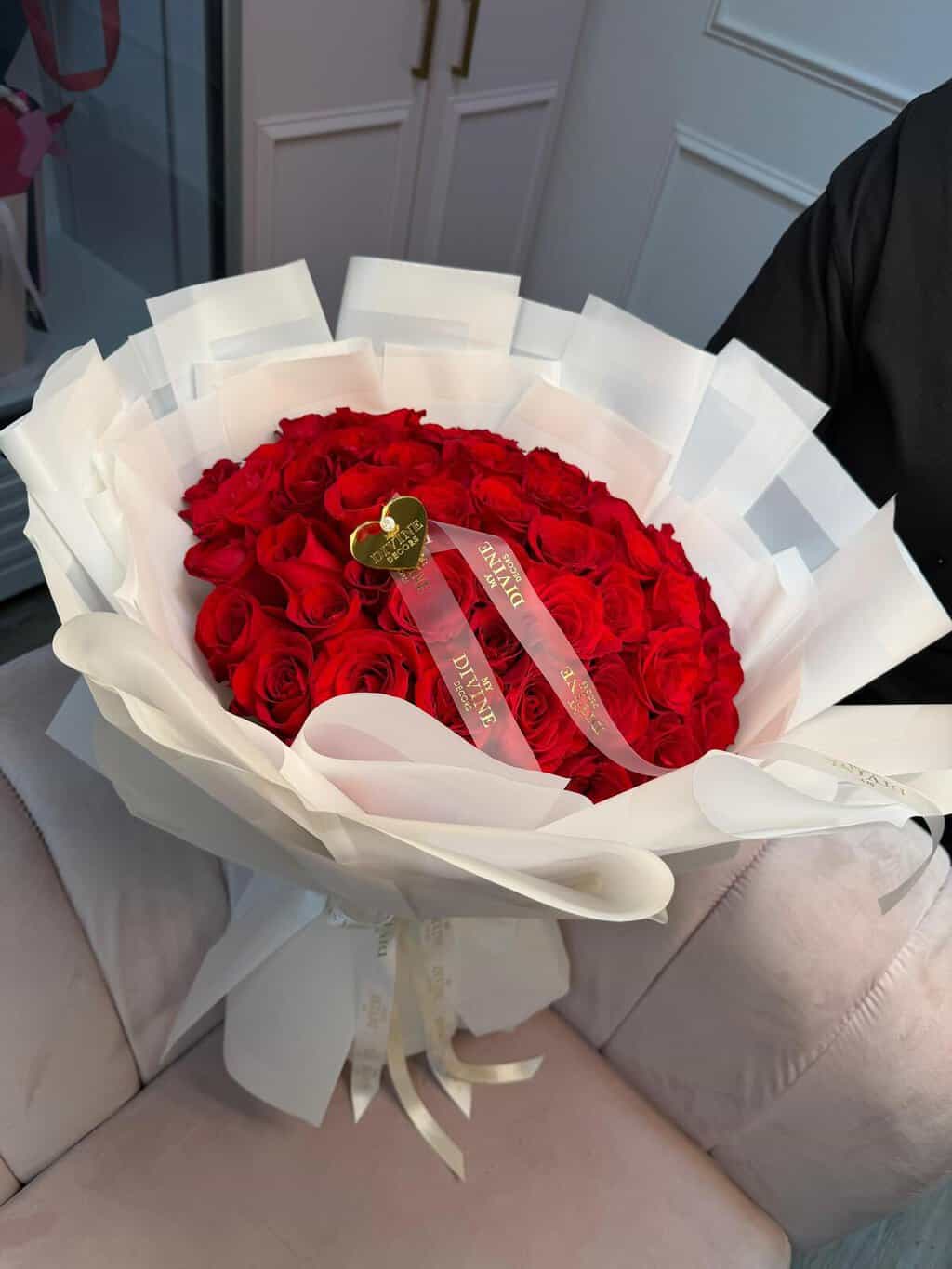Wrapped in layers of our signature soft white luxury paper and finished with elegant branded ribbons, this bouquet is designed to seduce at first glance. Each rose symbolizes passion, desire, and confidence—making it the ultimate statement for lovers, anniversaries, Valentine’s Day, or when words simply aren’t enough.