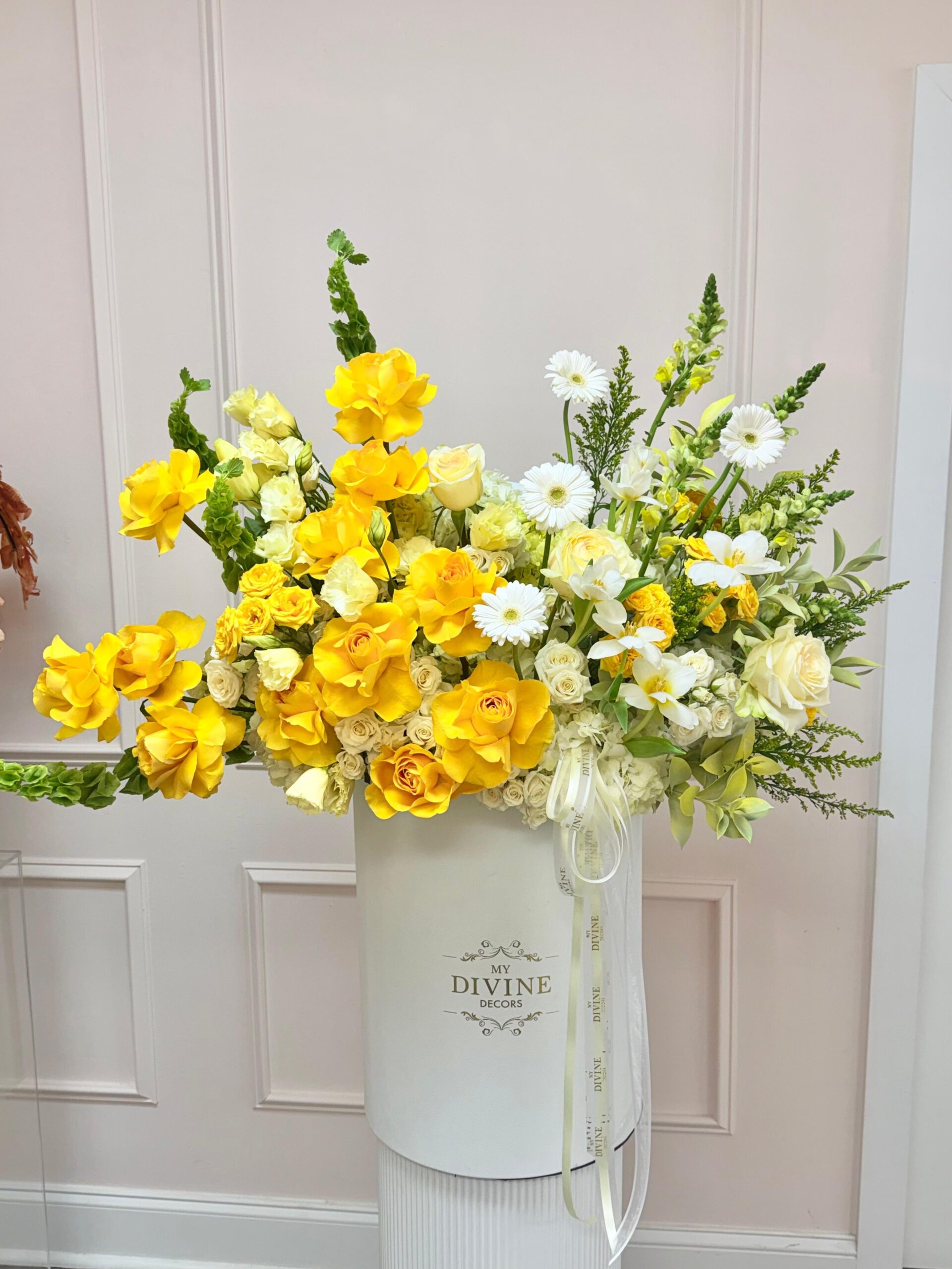 •⁠ ⁠Vase: My Divine Decors signature hat box (front arrangement)