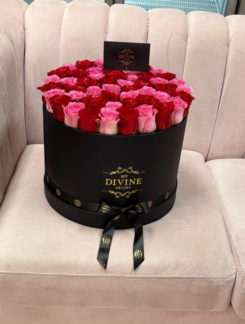 This design is available in: black, pink, gold or white box and roses the color of your choice. Design includes approximately 75 roses depending size of fresh flowers. (Any special request please make notes).