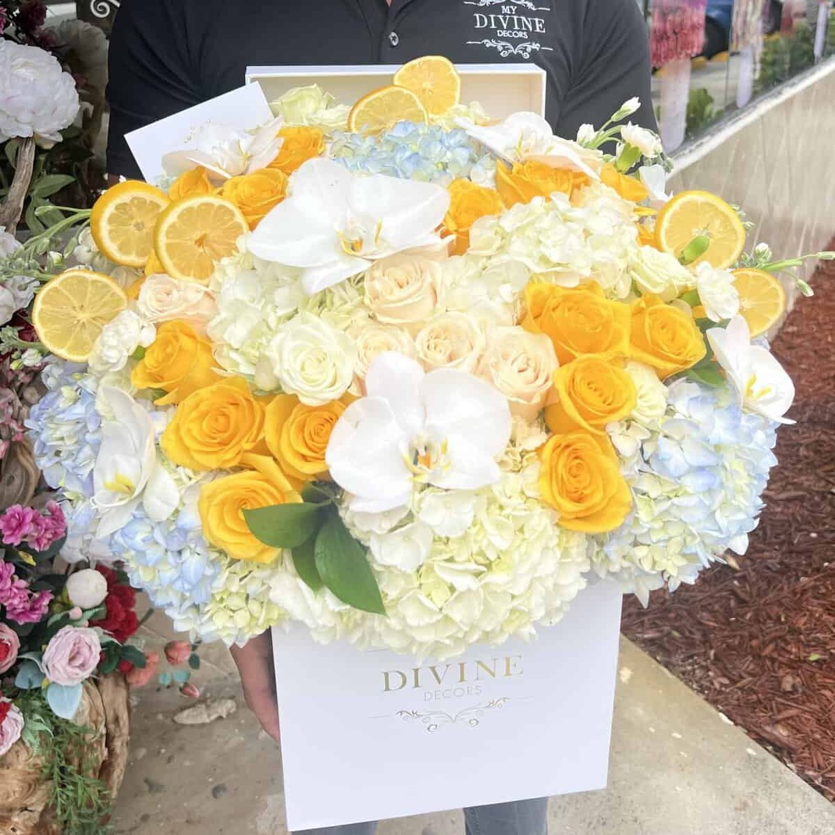 By making a purchase on mydivinedecors.com you understand and authorize that substitution may need to be made within a specific color palette. Necessary substitutions will be at the designer’s discretion, making sure we deliver a divine product with the corresponding health measures.