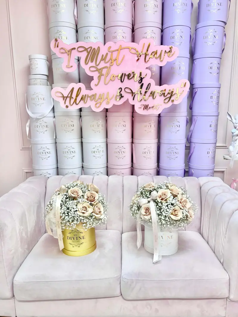 Introducing a stunning flower arrangement featuring soft blush nude roses complemented by delicate baby’s breath. The arrangement is elegantly adorned with pearl tulle for an added touch of sophistication. Presented in a signature box of your choice, this floral display makes for a beautiful gift or a lovely addition to any space. Perfect for special occasions or simply to brighten someone’s day.