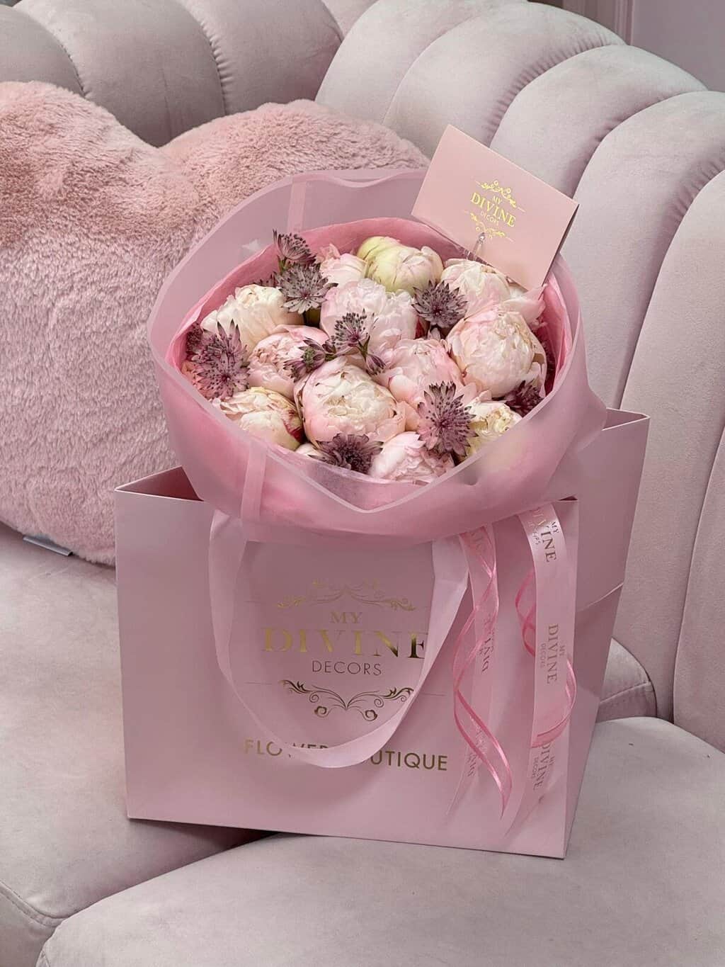 Perfect for birthdays, anniversaries, thank you gifts, or just because, this petite bundle of peonies is presented in our exclusive My Divine Decors signature bag, adding an extra layer of luxury to your heartfelt gesture.