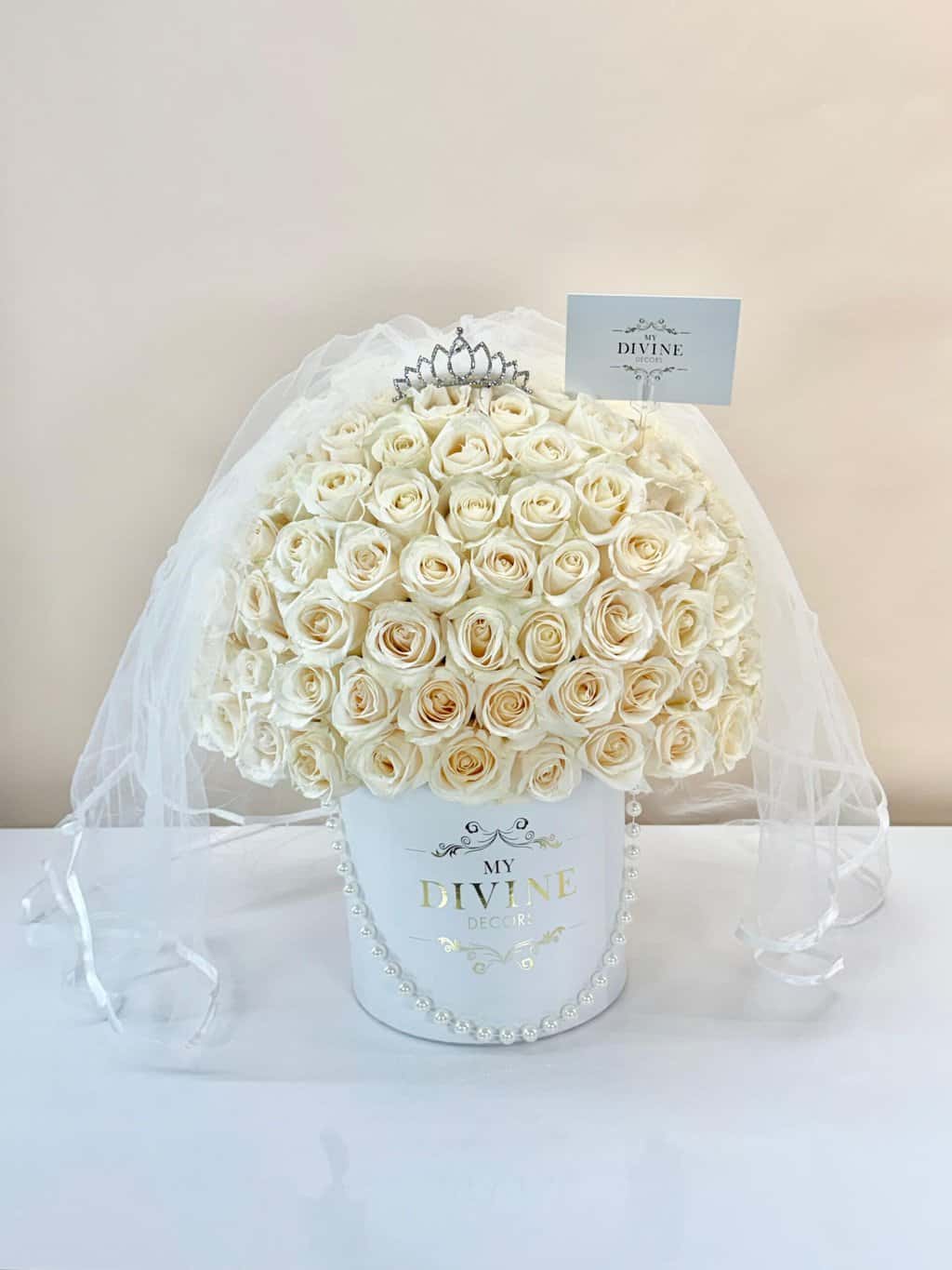Celebrate lifeโs most magical moments with our exquisite 75 Roses Bridal Hat Box, designed with every rose carefully placed facing forward for a flawless, picture-perfect finish. This elegant arrangement features premium, creamy roses styled in our signature hat boxโcreating a romantic, luxurious statement ideal for proposals, wedding mornings, engagement celebrations, and every unforgettable โShe said yesโ moment.