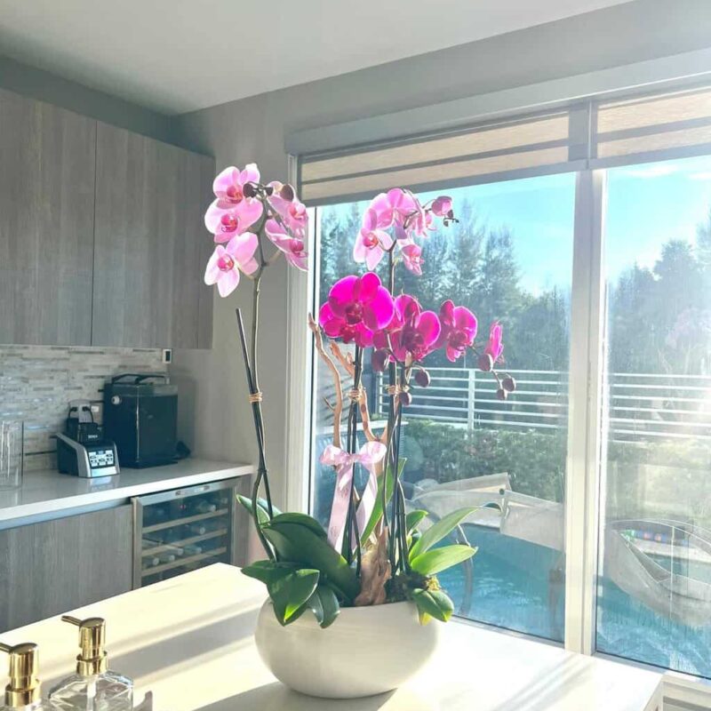 Brighten up any space with our stunning arrangement of 4 bloomed Standing Cymbidium orchids, gracefully displayed in an elegant vase. These exquisite orchids, known for their long-lasting beauty and vibrant colors, make a perfect gift or a delightful addition to your home decor. Please note that as fresh cut flowers are perishable, their longevity may vary, and colors may differ slightly from the images shown, adding a unique touch to each arrangement. Elevate your surroundings with these captivating. Colors may vary.