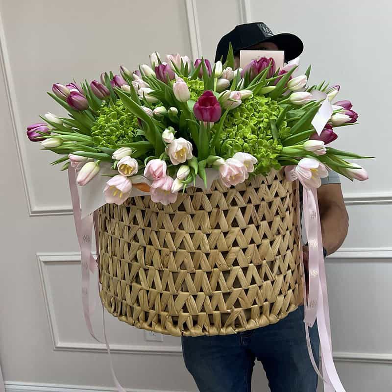 Introducing our 200-250 wide basket of roses, elegantly arranged to create a stunning display. This generous selection showcases a variety of rose colors, each symbolizing beauty and love. Perfect for special occasions or as a heartfelt gesture, this basket adds a touch of sophistication and warmth to any setting. Ideal for gifting or enhancing your home dรฉcor, these roses will create a lasting impression. Enjoy the timeless elegance of this beautiful arrangement.