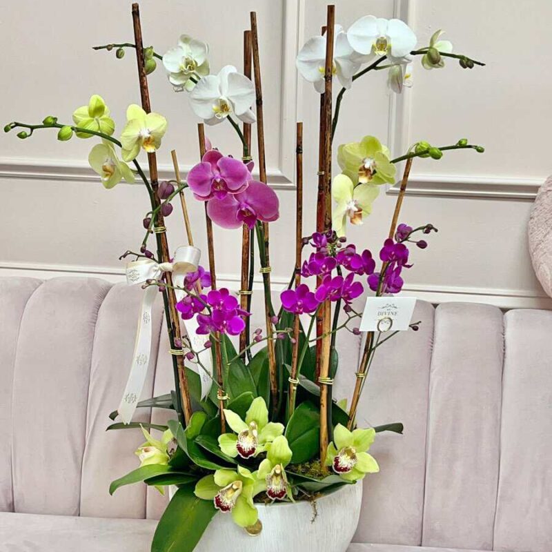 Colors and type of orchids may vary based on seasons and availability. Please make a note if you prefer a different color of Orchid.