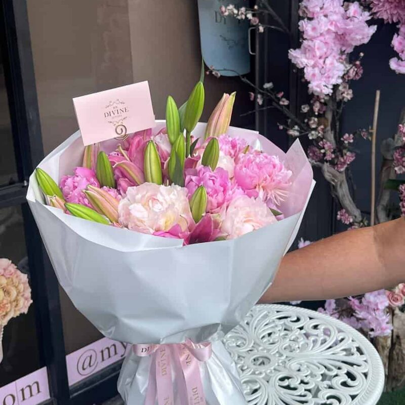 These is a hand wrapped bouquet of roses & baby’s breath. Keep in mind these flowers are with no water and fresh flowers are perishable.