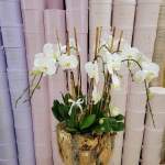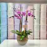 A statement piece of natural beauty, this arrangement features multiple premium phalaenopsis orchids artistically styled in a tall, sleek white vase. With 8 cascading blooms in vibrant shades of purple, it brings luxury and sophistication to any home, office, or event space. Long-lasting and graceful, it’s the perfect gift to impress or a stunning décor accent that elevates any room.