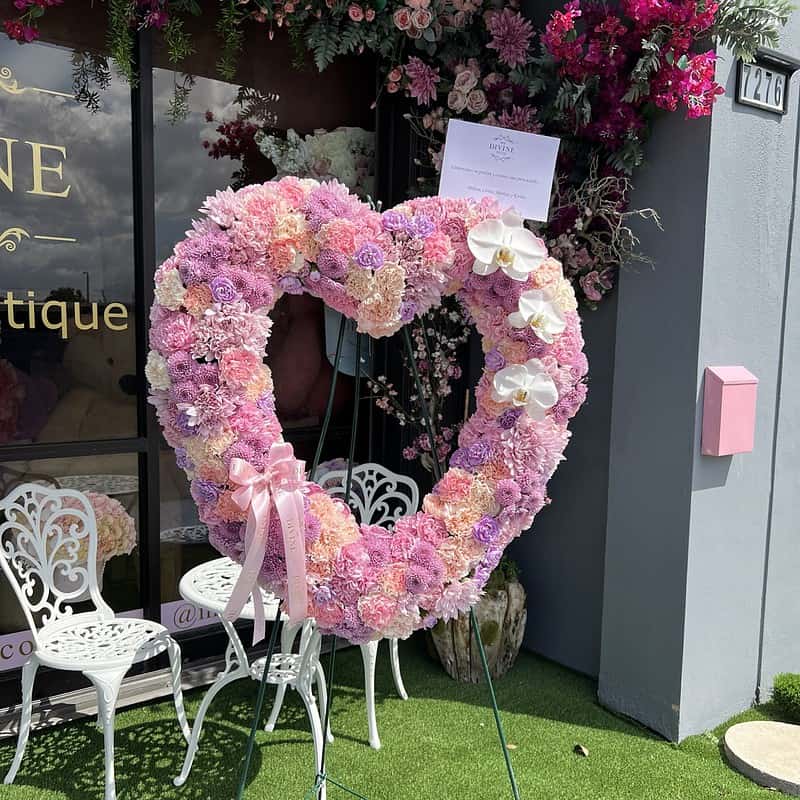 Heart is 2.5 ft tall.ย ย Fresh flowers are perishable.ย For long lasting please ask for preserved roses upgrade (additional cost).