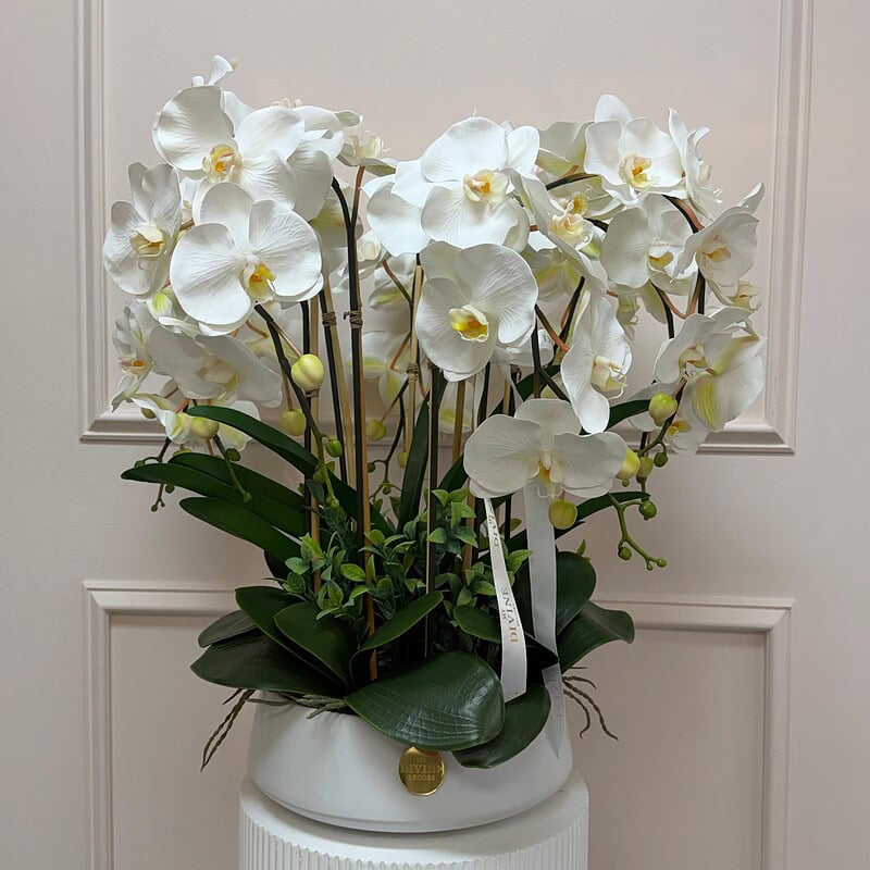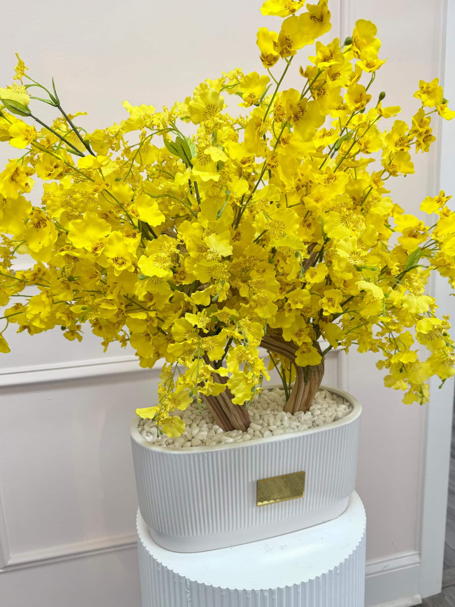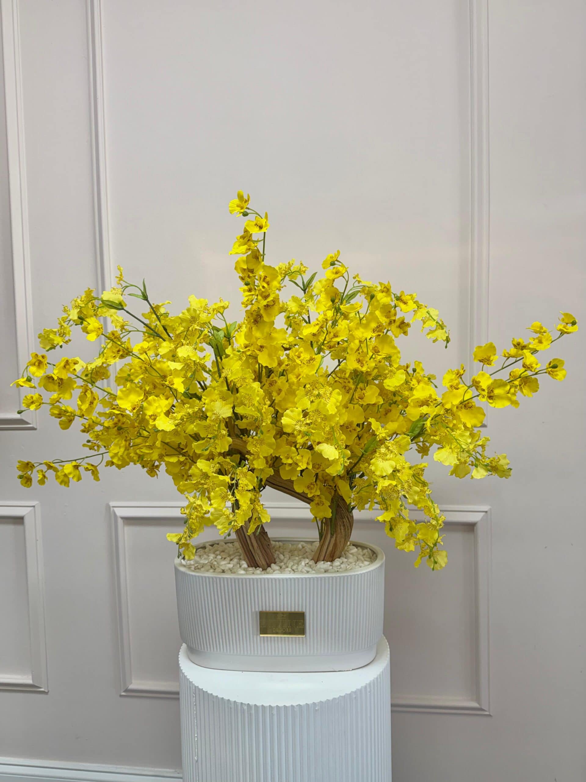 Bring everlasting elegance into any space with our stunnin Oncidium Orchid arrangement. Designed with lifelike silk blooms, this piece features vibrant yellow Oncidium orchids—often known as “dancing lady orchids”—gracefully branching out to create a full, airy, and sophisticated look.